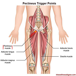 در این حرکت عضله هدف، عضلات نزدیک کننده ران و داخل پا است. همچنین عضلات کمکی در این حرکت سرینی بزرگ و کوچک، و چهار سر ران می باشند.